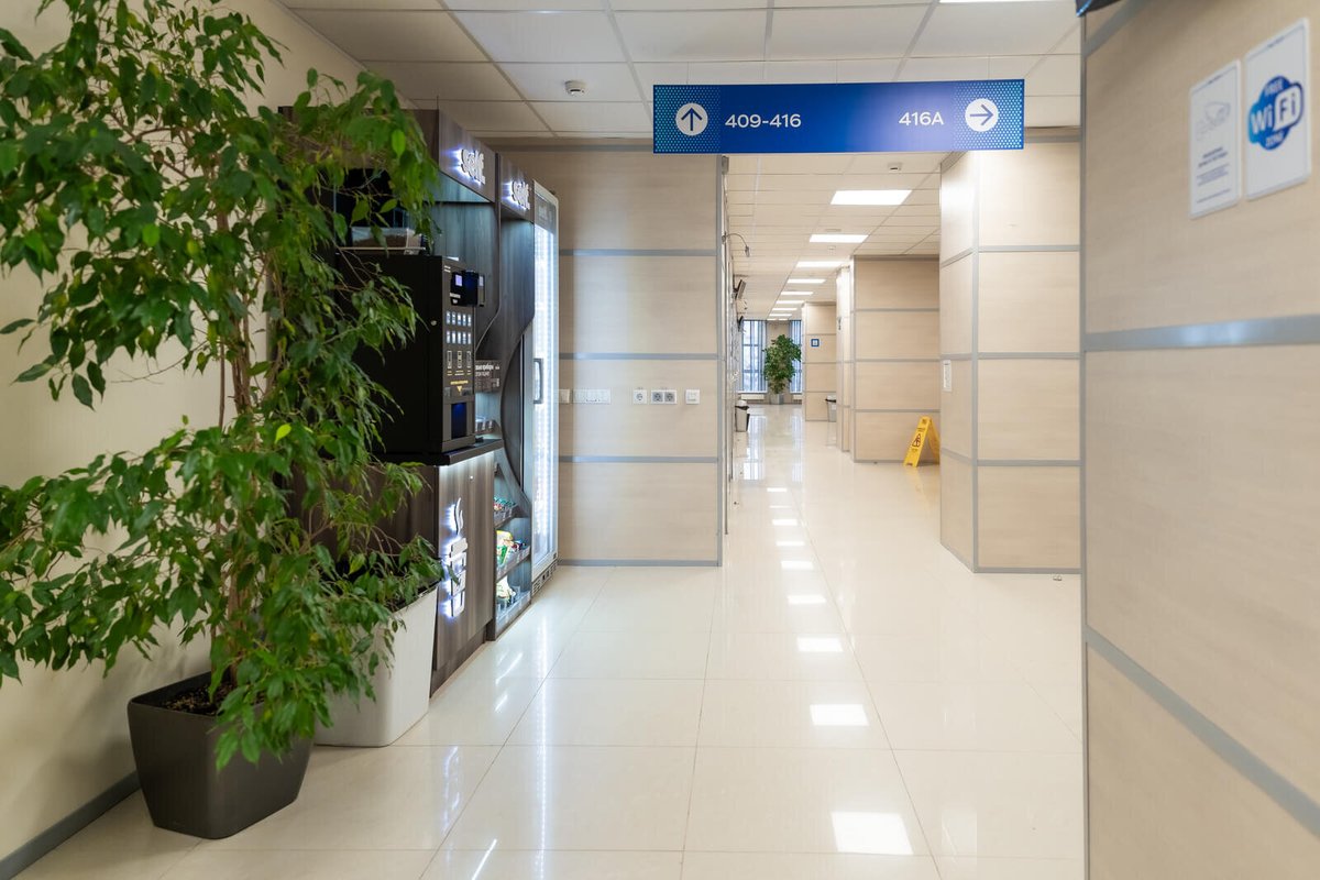 Отличная визуальная навигация, информационные табло возле каждого кабинета, кулеры с водой на каждом этаже, кафетерий, вежливый и отзывчивый персонал - все это делает пребывание в клинике максимально комфортным.